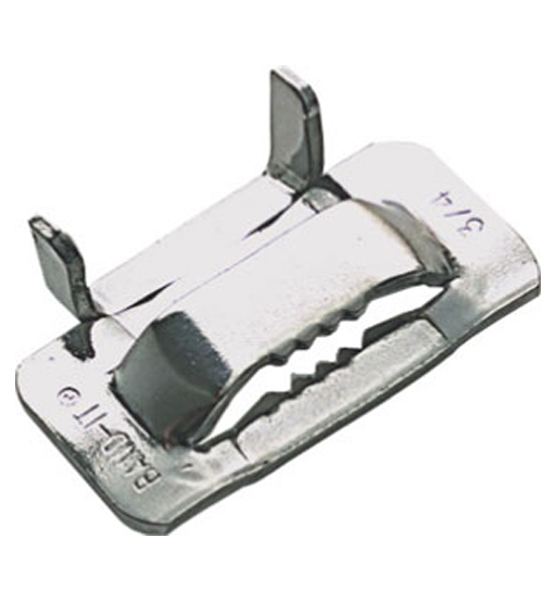 BAND-IT® Ear-Lokt Buckles can be used with many types of BAND-IT® stainless steel banding providing superior fastening strength.
